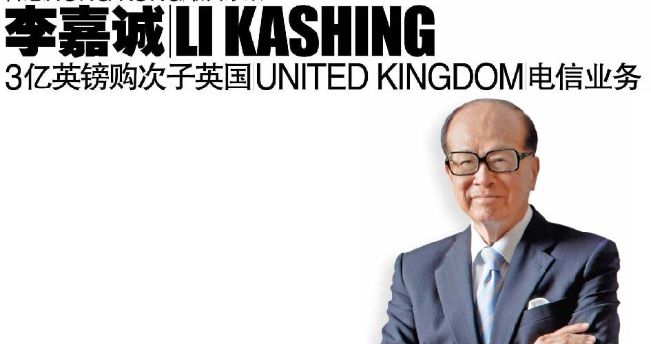 香港 Hongkong 最富家族 李嘉诚 Li Kashing 3亿英镑购次子英国 United Kingdom 电信业务