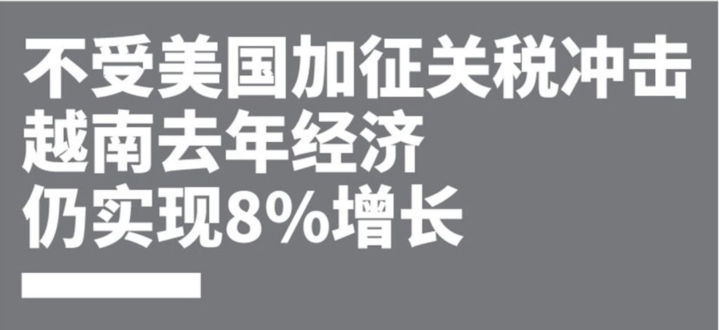尽管美国加征关税,但在服务业、建筑业和出口增长的推动下,越南去年经济仍实现8%增长。据越南统计总局2026年1月5日发布的数据,越南预计去年国内生产总值(GDP)显著增长,增速达8.02%,高于前年。其中,越南GDP去年第四季同比增长8.46%,是自2011年以来最快的第四季度增速。进出口方面,越南去年出口额约为4750亿美元,同比增长17%;进口额4550亿美元,比2024年增长19%。数据显示,制造业是越南经济增长的主要驱动力,去年第四季的制造业增长超过10%。